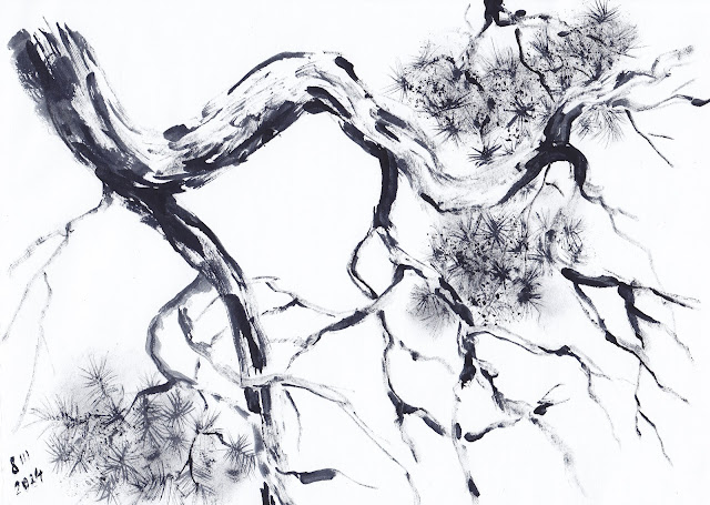 I painted this bouquet from my imagination, without preliminary pencil sketch. My inspiration was the Chinese painting style.