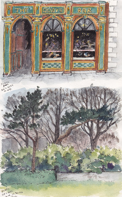 W Dublinie byliśmy tylko cztery dni. Dużo wrażeń. Wspaniała biblioteka w Trinity College z zamkniętym w gablocie skarbem narodowym - Księgą z Kells z VIII wieku, przytulne puby z muzyką irlandzką na żywo i wiosna w parkach. Pogoda nie sprzyjała szkicowaniu, więc po powrocie do domu namalowałam kilka obrazków na podstawie zdjęć.